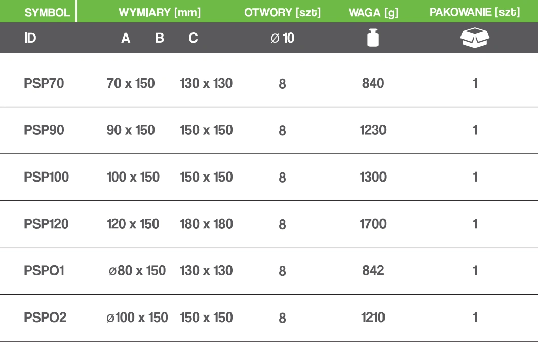 Podstawa słupa przykręcana 120x150 / 180x180 TZPSP120